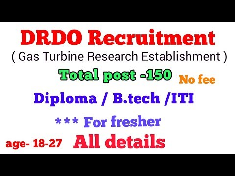 DRDO Recruitment – Gas Turbine Research Establishment ( GTRE ) - Freshers can apply - Diploma, B.Tech, ITI Eligible
